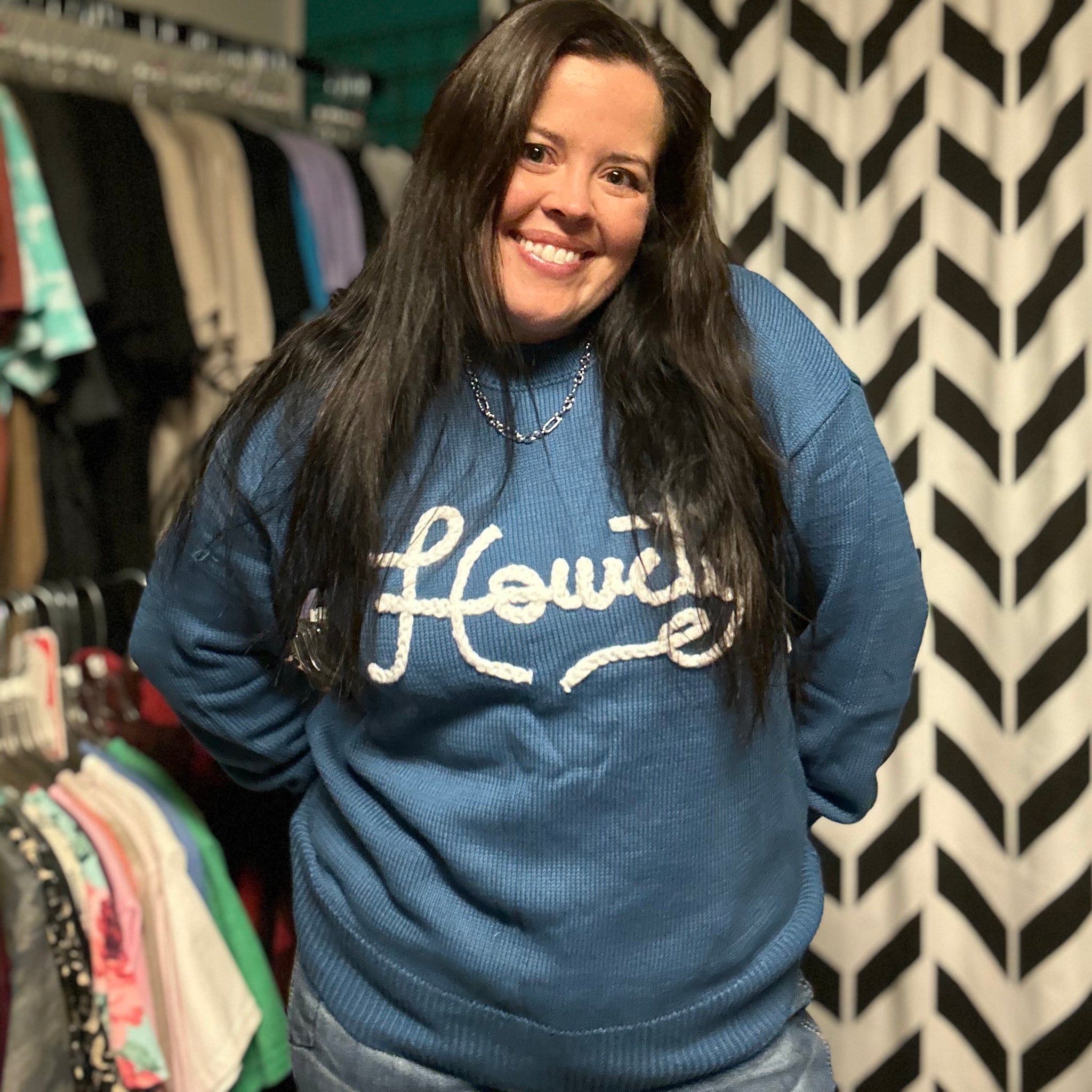 super cute sweater! Fits great & very nice knit fabric